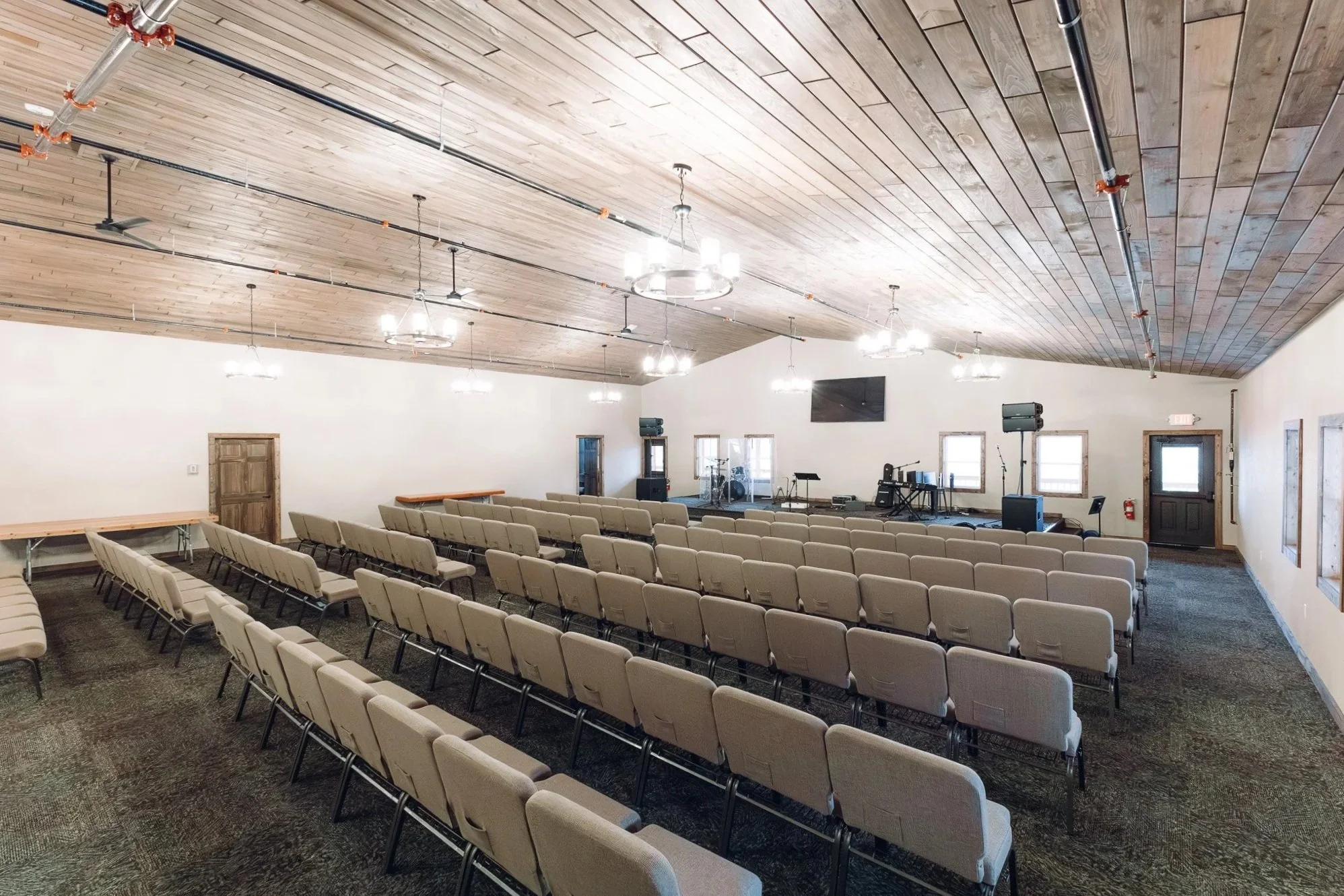 The Chapel is our premiere meeting space that can hold the largest groups. During the fall, winter, and spring there are 3 breakout rooms connected to the main meeting room. During the summer, one of those rooms is used as the Program Office.