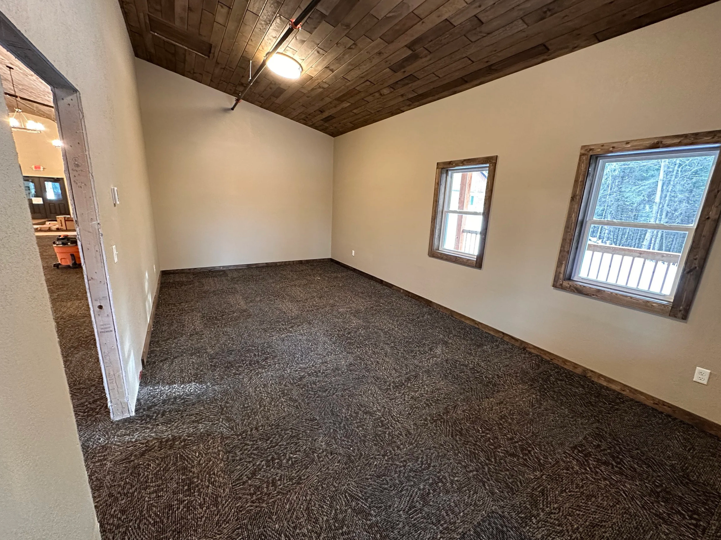 When you first walk through the doors of the lodge, you will enter the main meeting space. This space can accommodate 175 people. There are bathrooms and one breakout room located there.